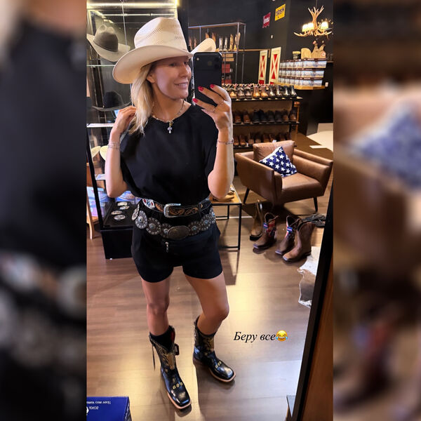 47-летняя Елена Летучая позировала в черном топе, велосипедках и ремнях с массивными пряжками. Образ дополнили грубые ботинки и ковбойская шляпа. При этом ведущая отказалась от макияжа и укладки. На других кадрах она также показала мужа, который выбирал ботинки для покупки. Пара уже несколько недель путешествует по Южной Америке.