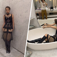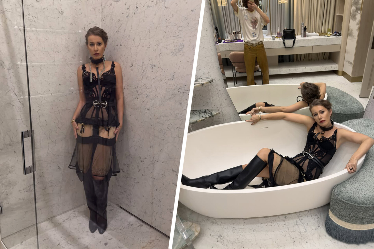 Ксения Собчак в кружевном белье устроилась фотосессию в ванной