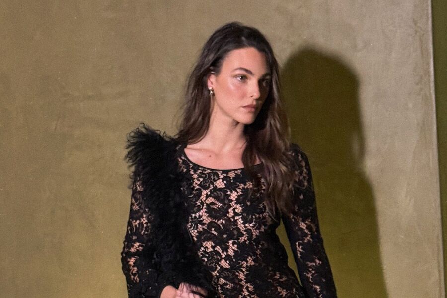 27-летняя Виттория Черетти позировала перед камерой в черном кружевном прозрачном мини-платье, под которое не стала надевать бюстгальтер. Манекенщица добавила к наряду пушистую сумку в тон, босоножки на каблуках и серьги. Знаменитости уложили распущенные волосы и сделали макияж в естественном стиле.