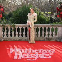 Актриса Марго Робби вышла на публику в Лондоне в рамках рекламной кампании премьеры фильма «Грозовой перевал». Об этом сообщает WWD.