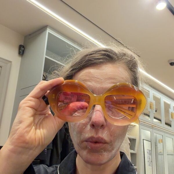 Ксения Собчак в черной пижаме позировала в домашнем интерьере с маской на лице. Волосы журналистка собрала в хвост и примерила желтые очки.