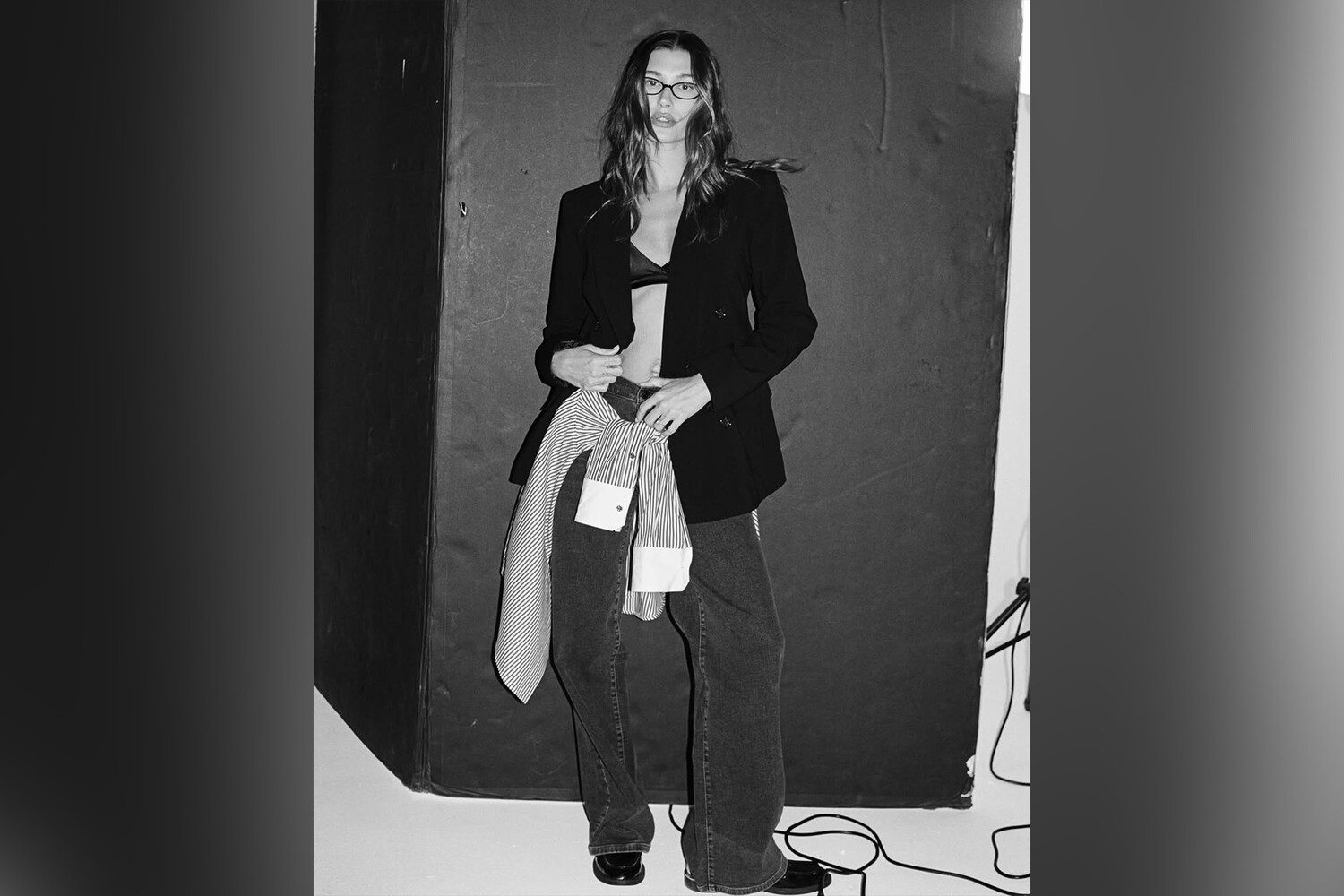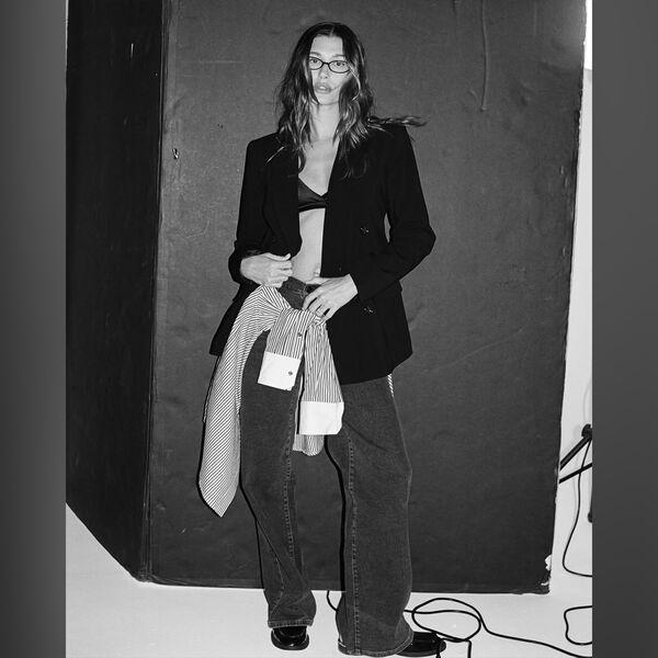 29-летняя Хейли Бибер стала героиней новой коллекции бренда DKNY. На одном из кадров модель предстала в черном бюстгальтере, который дополнила жакетом, широкими джинсами и ботинками. Манекенщица повязала на пояс полосатую рубашку и надела очки. Звезде уложили волосы в легкие локоны и сделали макияж в естественном стиле.