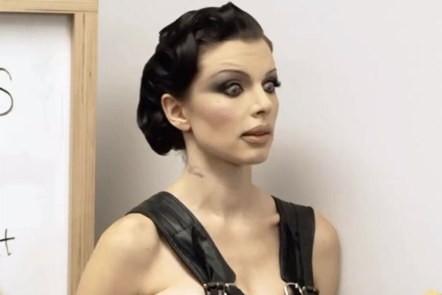 Бывшая девушка Канье Уэста в комбинезоне из кожаных ремней снялась в офисе