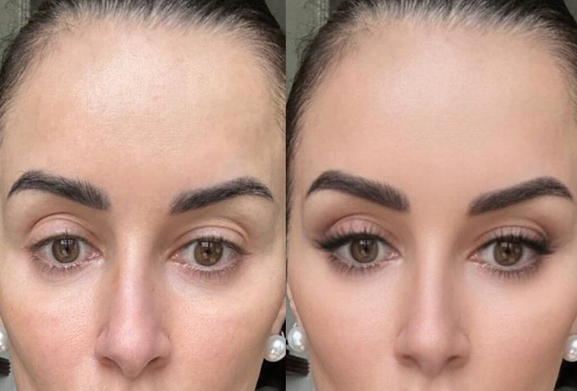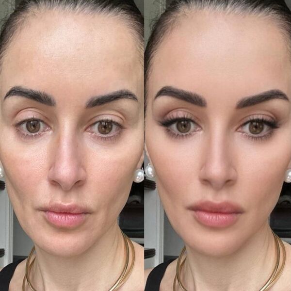 50-летняя Тина Канделаки показала лицо без макияжа и фильтров. При этом бизнесвумен позировала в черном полупрозрачном топе и с золотым колье на шее. На другом фото она продемонстрировала макияж, созданный с помощью фотошопа. Ей аккуратно оформили брови, удлинили ресницы и нанесли на губы нежно-розовую помаду.