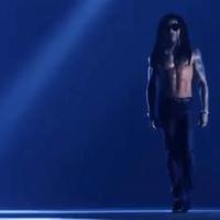 61-летний Ленни Кравиц позировал без рубашки, показав обнаженный торс. Образ дополнила сет цепей на шее и солнцезащитные очки.