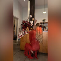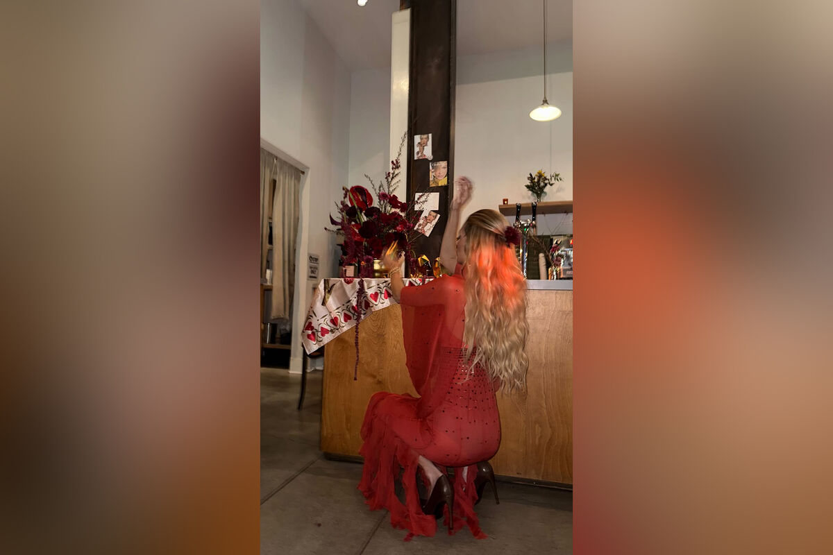 Белла Хадид позировала в «голом» красном платье без нижнего белья. Модель вместе с подругами устроила девичник в одном из ресторанов. Компания украсила стол свечами и тематическим декором с цветами и открытками.