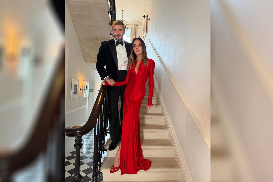 51-летняя Виктория Бекхэм и Дэвид были запечатлены в доме. Дизайнер позировала в красном облегающем макси-платье с глубоким декольте и разрезом. Она также надела босоножки на каблуках в тон и золотую цепочку с кулоном. Знаменитость предстала с уложенными волосами и макияжем. Дэвид Бекхэм был одет в белую рубашку с бабочкой, черный брючный костюм и туфли.