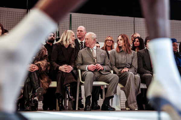 Карл III в сером костюме с галстуком зашел в зал вместе с генеральным директором Британского совета (организация признана нежелательной в России ) моды Лорой Уир. Король сидел на первом ряду и смотрел новую коллекцию. Перед шоу он осмотрел выставку Маккартни, посвященную устойчивым британским инновациям. Выход на публику случился одновременно с задержанием брата Карла III, экс-принца Эндрю.