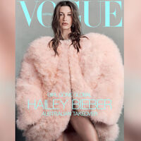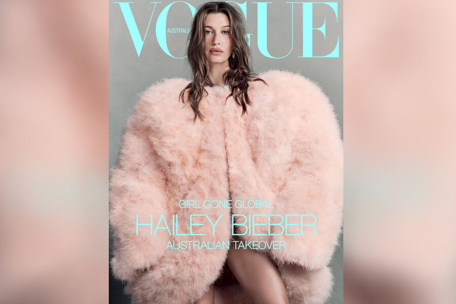 29-летняя Хейли Бибер позировала в объемной розовой шубе. Волосы ей уложили мягкими волнами и сделали макияж с блестками. На других кадрах модель позировала в расстегнутой шубе и рыжем топе от купальника. Хейли Бибер примерила образы с платьем с открытой спиной, блузой и брюками.
