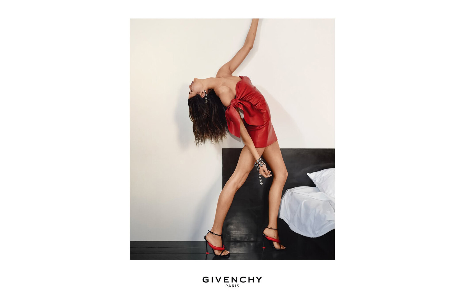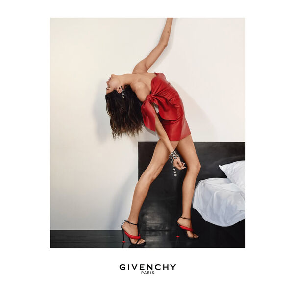 24-летняя Кайя Гербер стала лицом новой коллекции бренда Givenchy. На одном из фото модель позировала в красном кожаном мини-платье с открытыми плечами, которое дополнила босоножками на каблуках, массивным браслетом с кристаллами и длинными серьгами. Манекенщице уложили волосы и сделали макияж.