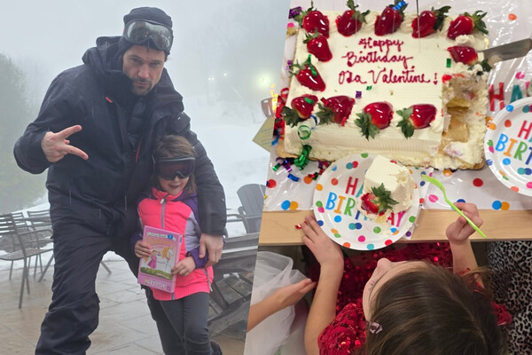 На одном из фото Данила Козловский и его дочь были запечатлены на горнолыжном курорте. Актер стоял в черном лыжном костюме, а девочка позировала в розово-серой куртке и темных легинсах. На другом снимке Ода Валентина сидела за столом, на котором стоял праздничный торт. Дочь артиста была одета в красное платье в пайетках.