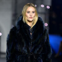 Рози Хантингтон-Уайтли приняла участие в показе Burberry, который состоялся 23 февраля в рамках Недели моды в Лондоне. Модель вышла на подиум в темно-синей шубе с поясом, черных брюках и ботинках. Манекенщица дефилировала с распущенными волосами и макияжем с черной подводкой и розовой помадой. Это был первый выход знаменитости после того, как ее обвинили в злоупотреблении филерами.