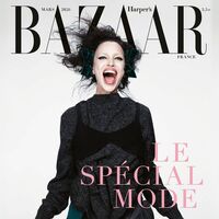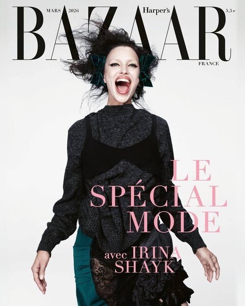 40-летняя Ирина Шейк стала героиней нового выпуска французского журнала Harper's Bazaar. На обложке супермодель предстала в парике с черными взъерошенными волосами. Манекенщице также нанесли белую пудру на лицо, сделали черные стрелки и накрасили губы блеском. Звезда подиумов позировала в черном бюстгальтере, который был одет на свитер. Она также надела юбку из разных кусков ткани. Автором съемки выступил фотограф Вилли Вандерперре.