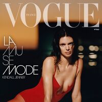 30-летняя Кендалл Дженнер стала героиней нового выпуска французского журнала Vogue. На обложке модель предстала в красном боди с глубоким декольте, которое дополнили колготки в тон и туфли на маленьком каблуке. Звезде реалити-шоу сделали укладку в небрежном стиле и макияж в нюдовых тонах.