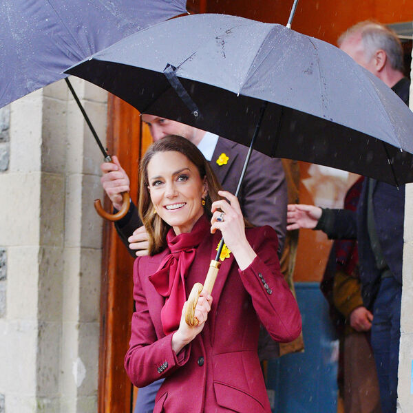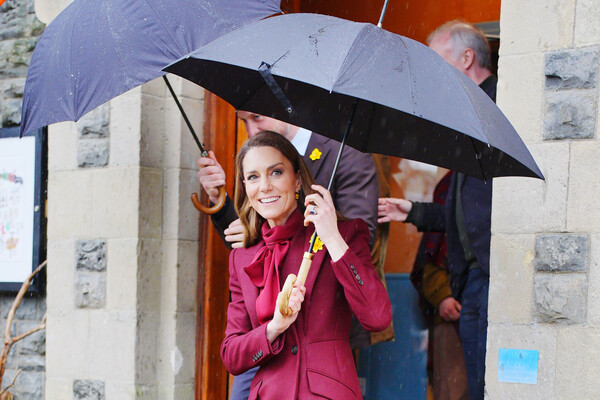 44-летняя Кейт Миддлтон предпочла для выхода монохромный образ в бордовом оттенке: пальто от бренда Alexander McQueen, блузу с бантом, макси-юбку и высокие лакированные сапоги от бренда Gianvito Rossi. Образ дополнили золотые серьги и брошь-нарцисс — символ святого Давида, который традиционно носят в день праздника как знак уважения к валлийскому наследию. Принц Уильям был одет в синие брюки, джемпер, рубашку и коричневый пиджак.