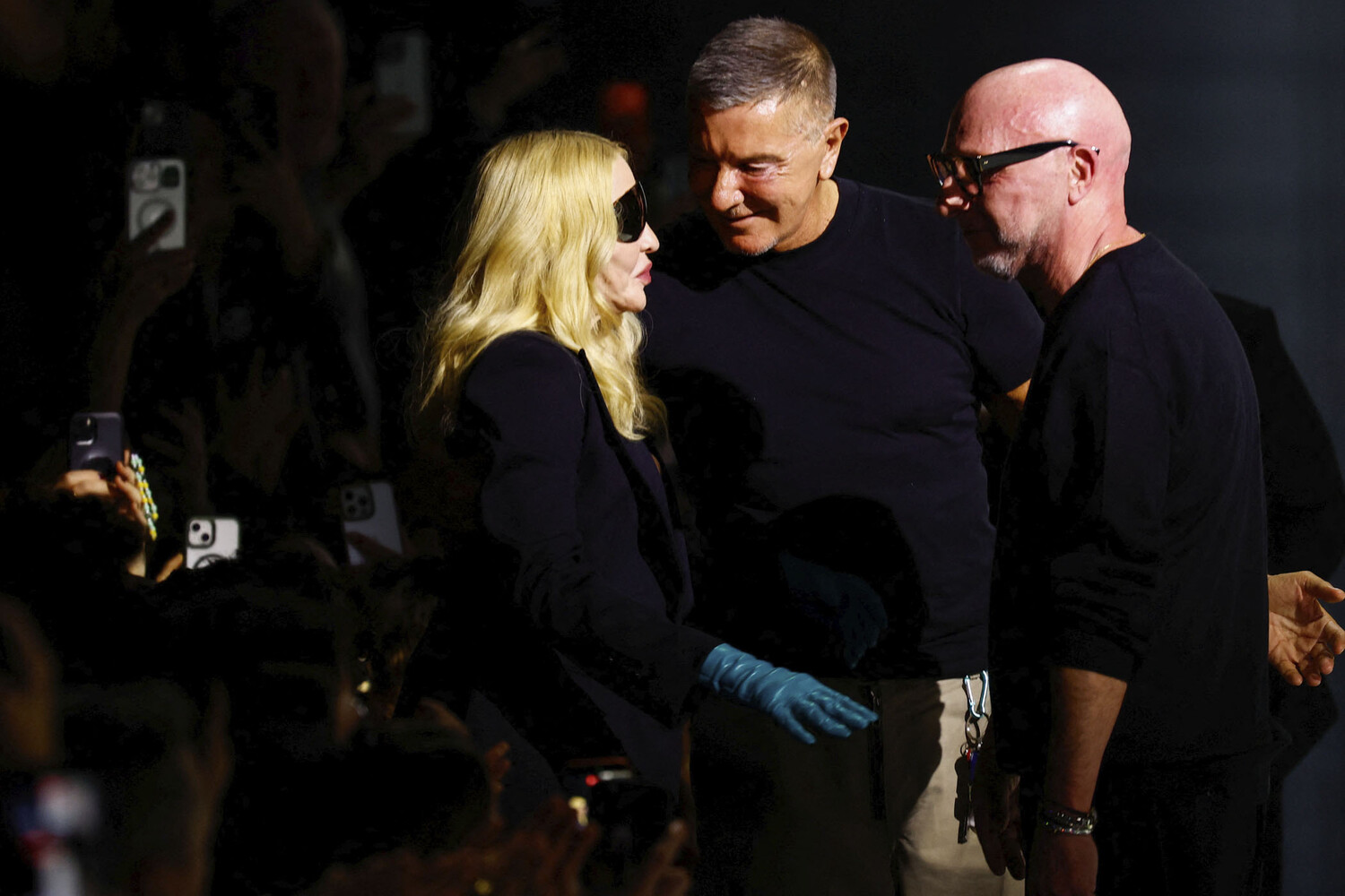 67-летняя Мадонна предпочла для выхода черное корсетное мини-платье с кружевом и приталенный жакет. Образ дополнили зеленые перчатки из кожи, солнцезащитные очки и туфли с острым мысом. Волосы ей уложили мягкими локонами и сделали легкий макияж. Перед папарацци певица появилась с 29-летним женихом Акимом Моррисом.
