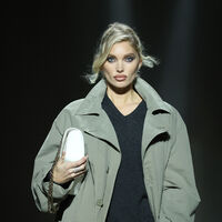 Эльза Хоск вышла на подиум в синих брюках, джемпере и тренче цвета хаки. В руках модель держала белую кожаную сумку. Волосы ей собрали в высокий пучок и небрежно выпустили пряди у лица. Однако особое внимание она обратила в соцсетях на свой макияж — «заплаканные» глаза с потекшей тушью и подводкой, а также кремовая помада с карандашом в тон.