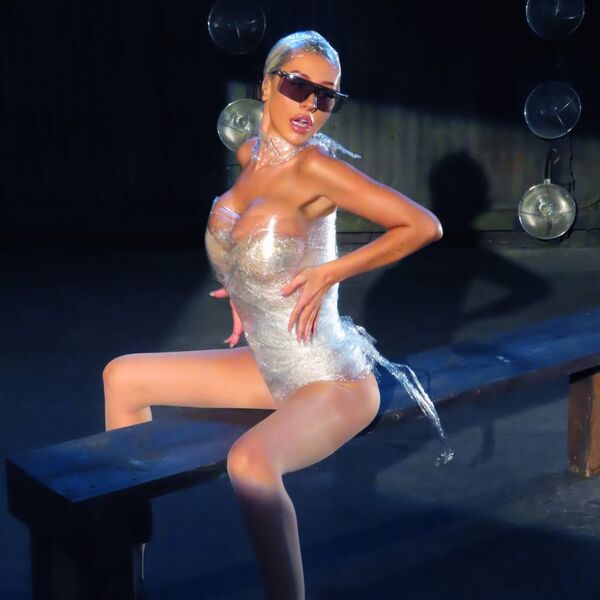 45-летняя Кристина Агилера была запечатлена в боди, обмотанном пищевой пленкой. При этом певица не стала надевать штаны. Поп-исполнительница добавила к образу белые колготки, туфли на каблуках и черные солнцезащитные очки. Знаменитости также убрали волосы под пленку и сделали макияж с розовым блеском для губ.