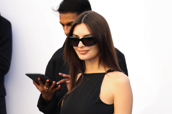 Эмили Ратаковски посетила показ новой коллекции бренда Courreges, который прошел во время Недели моды в Париже. Модель вышла в свет в черном облегающем платье-миди с вырезами по бокам и сочетала его с босоножками на каблуках в тон. Манекенщица появилась на закрытом светском мероприятии с распущенными волосами и макияжем с черными стрелками и бежевой помадой.