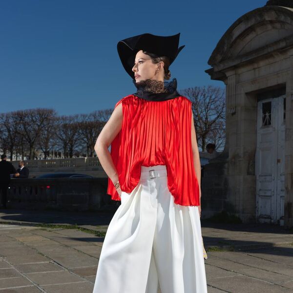 «С Джонатаном Андерсоном мы знакомы давно: 10 лет назад я привозила его на public talk от журнала L'Officiel. Тогда он возрождал забытый Loewe, а сегодня — Dior. Для показа мы со стилистами выбрали алую блузу с плиссировкой и кружевной вуалью (отсылка к платью Dior, созданному Ивом Сен Лораном в 1960 году), белые кюлоты, мюли с розой, шляпу (было много вариантов, но выбрала черную треуголку с интересной геометрией) и архивную сумку Dior saddle bag, расшитую бисером — ей много лет, еще московский пресс-офис Dior с Инной Ассекритовой во главе рассылал такие сумки главным инфлюенсерам России, я оказалась в их числе», — написала Собчак.
