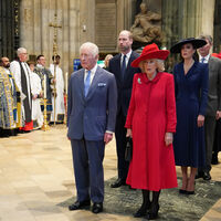 Кейт Миддлтон и принц Уильям присоединились к королю и его супруге Камилле на ежегодной службе в честь Дня Содружества в Вестминстерском аббатстве в Лондоне. Принцесса Уэльская выбрала для мероприятия темно-синее платье-пальто Catherine Walker, шляпу с широкими полями и туфли на каблуках. Она дополнила образ бусами из жемчуга и серьгами королевы Елизаветы II. Принц Уильям предпочел белую рубашку, темно-синий костюм и туфли.