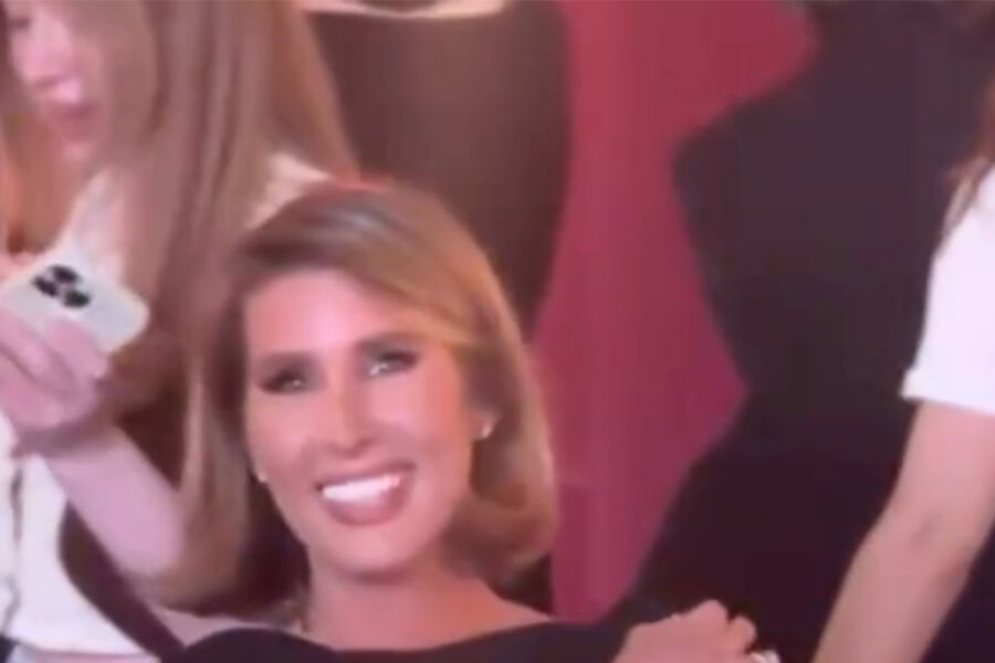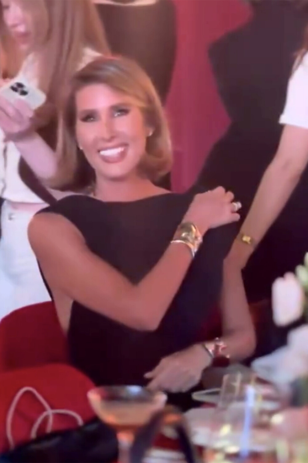 Кети Топурия позировала в черном облегающем платье с открытыми плечами и руками, а также голой спиной. Образ дополнили массивные золотые браслеты. Певица также продемонстрировала новый имидж — каре с легким контурингом.