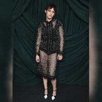 35-летняя Кристен Стюарт посетила 17-й ежегодный ужин Chanel, приуроченный к церемонии вручения премии «Оскар». Актриса выбрала для закрытого мероприятия черный прозрачный костюм, который состоял из жакета и юбки. Артистка дополнила образ боди и туфлями на каблуках.