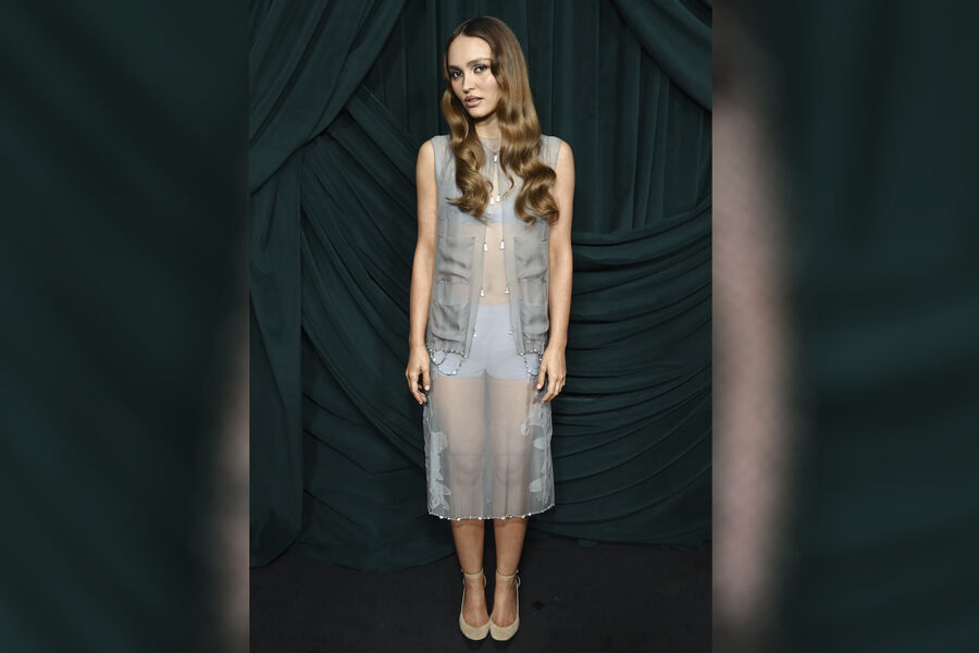 26-летняя Лили-Роуз Депп посетила 17-й ежегодный ужин Chanel, приуроченный к церемонии вручения премии «Оскар». Модель позировала перед камерами в сером абсолютно прозрачном платье-миди с накидкой, под которое надела белье в тон. Актриса добавила к образу туфли на каблуках. Дочь Джонни Деппа пришла на мероприятие с уложенными в локоны распущенными волосами и макияжем с черными стрелками, тенями и помадой.