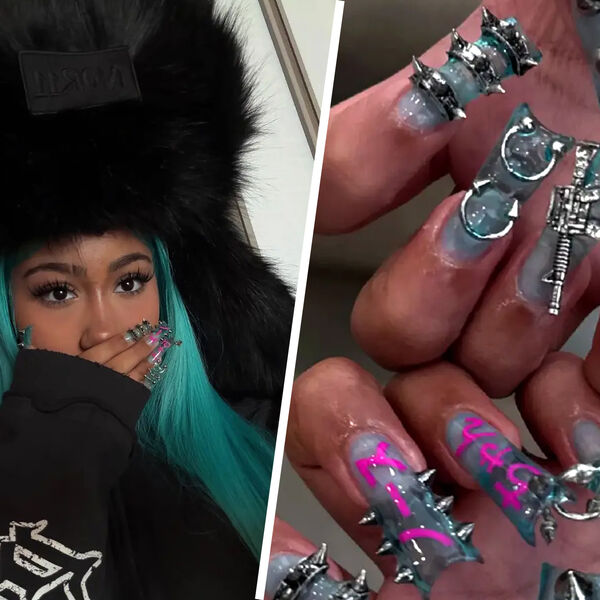 12-летняя Норт Уэст опубликовала в Instagram (владелец компания Meta признана в России экстремистской и запрещена) фото своего маникюра с пирсингом, шипами и блестками. На двух пальцах левой руки розовыми иероглифами было написано «North-chan» — отсылка к треку ее отца «Bomb», записанному совместно с рэпером Ty Dolla $ign в 2024 году.
