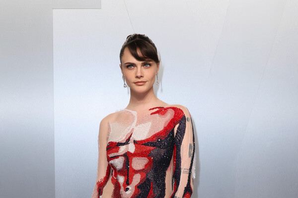 Кара Делевинь посетила вечеринку Vanity Fair, которая ежегодно проходит после церемонии вручения премии «Оскар». Супермодель выбрала для светского мероприятия макси-платье Thom Browne с имитацией обнаженного тела и черной юбкой. Манекенщица также надела длинные серьги, кольцо и ботильоны. Знаменитости собрали волосы в высокий пучок и сделали макияж с черными стрелками и нюдовой помадой.