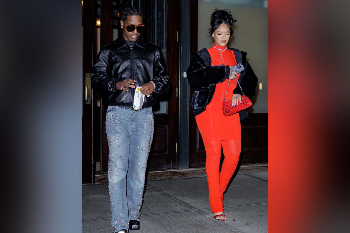 Папарацци подловили Рианну и A$AP Rocky 17 марта в Нью-Йорке. Влюбленные выходили из здания на Манхэттене и направлялись в сопровождении охраны к ожидавшему их автомобилю. Певица была одета в серый свитер, черную куртку, синие джинсы, сапоги с анималистичным принтом на каблуках и солнцезащитные очки. Рэпер появился на публике в черном пальто, брюках, кроссовках и кепке.