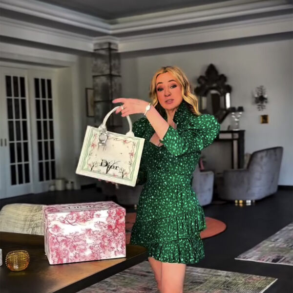 Рудковской преподнесли сумку от ее любимого французского бренда Dior. Изделие выполнено из кожи с цветочным принтом. Стоимость подобной сумки Miss Dior стартует от 300 тысяч рублей. В кадре продюсер была одета в зеленое мини-платье и белые балетки. Известно, что дорогостоящий подарок был подарен певцом Димой Биланом.