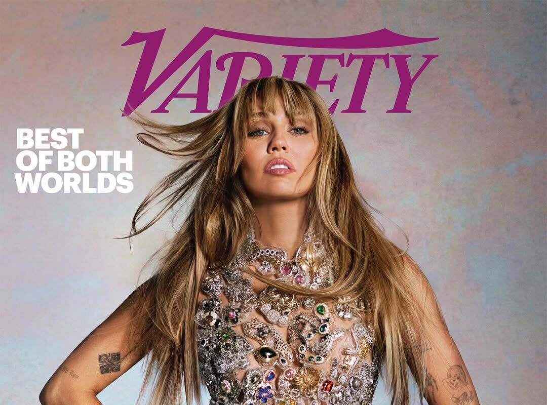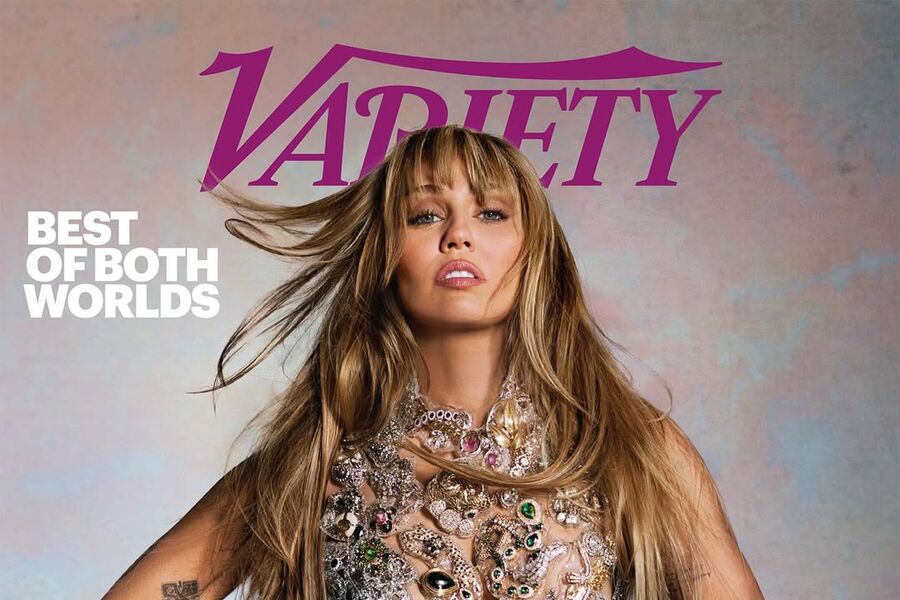 Майли Сайрус стала героиней нового выпуска журнала Variety. На обложке певица предстала в прозрачном платье, которое было украшено драгоценностями. При этом поп-исполнительница не стала надевать бюстгальтер. Актриса добавила к образу черные брюки и браслет. Знаменитость была запечатлена с уложенными распущенными волосами и макияжем с коричневыми тенями и розовой помадой.