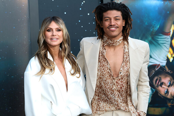 52-летняя Хайди Клум позировала в белом жакете на голое тело и брюках-палаццо. Волосы модель распустила и сделала вечерний макияж с бронзовыми тенями. Перед камерами она снялась с сыном-моделью, который предпочел для выхода пеструю блузу и бежевый пиджак.