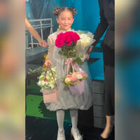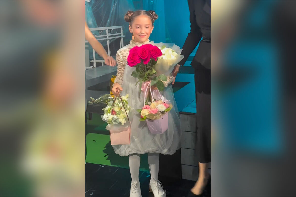 Дочь Агаты Муцениеце и Павла Прилучного Мия приняла участие в показе бренда вечерних платьев Sasha Kim. 10-летняя девочка вышла на подиум в пышном белом платье с акцентной черной лентой. На показе ее поддерживала мать.