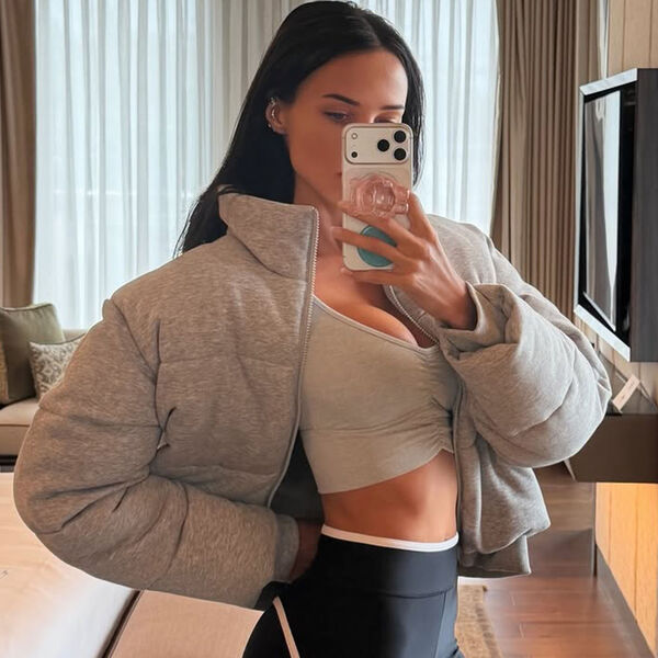Анастасия Решетова предстала перед зеркалом в спортивном сером топе, который сочетала с черными легинсами с белой полоской и курткой. Модель также надела кафф. Бизнесвумен позировала с распущенными волосами и макияжем в естественном стиле.