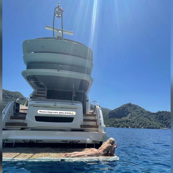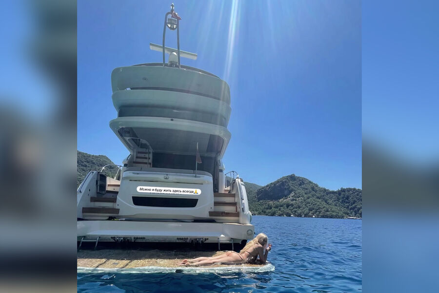 Наталья Рудова предстала перед камерой в черном крошечном бикини. Актриса с распущенными волосами лежала на палубе яхты и загорала.
