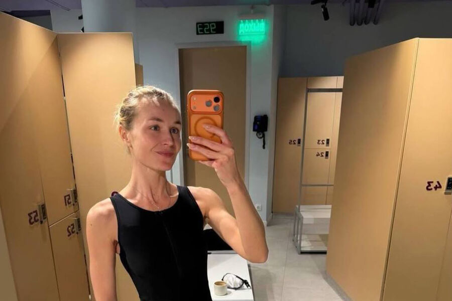 38-летняя Полина Гагарина стояла перед зеркалом в черном слитном купальнике. Певица позировала с собранными в пучок волосами и без косметики в раздевалке спортзала.