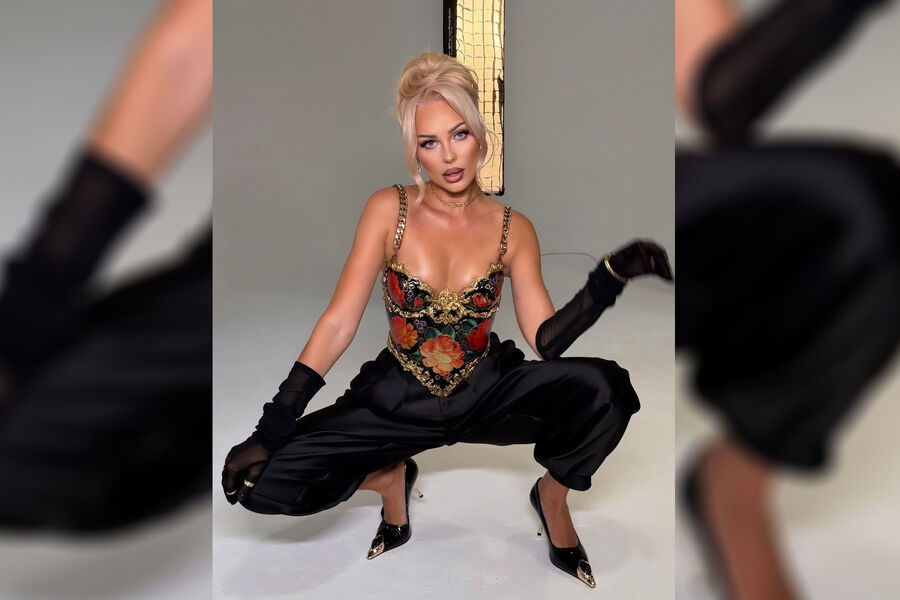 Певица Ханна в корсете с цветами и золотом снялась для глянца