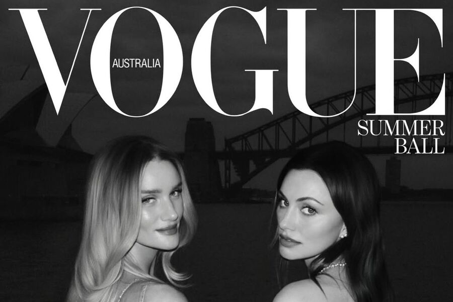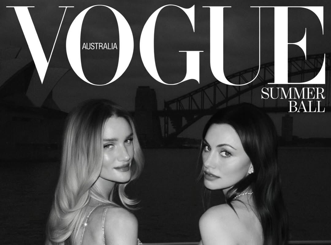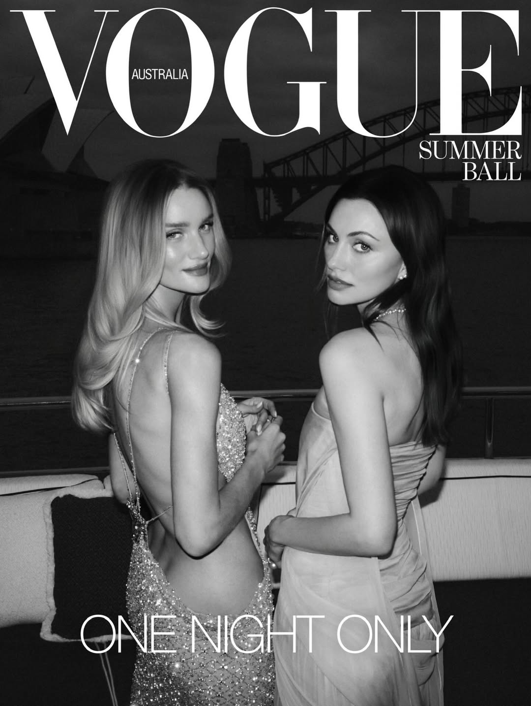 Рози Хантингтон-Уайтли вместе с актрисой Фиби Тонкин снялась для нового выпуска журнала Vogue. На обложке модель предстала в сияющем макси-платье с вырезом до ягодиц, под которое не стала надевать белье. Манекенщица позировала с уложенными распущенными волосами и макияжем. Актриса стояла в силуэтном макси-платье, колье и серьгах.