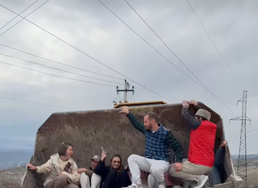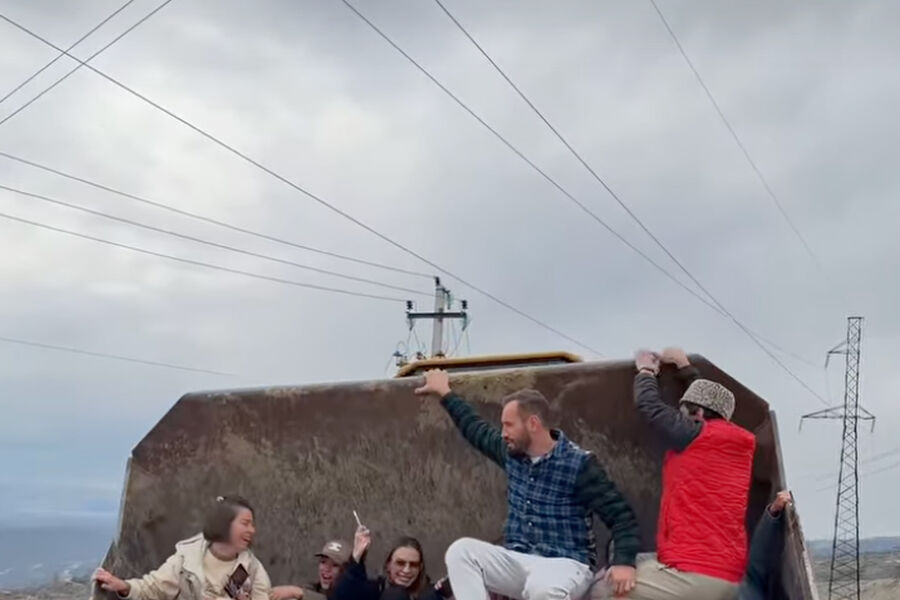 Ведущая Ксения Бородина с друзьями прокатилась в ковше трактора в Дагестане. Снимками она поделилась в Instagram (владелец компания Meta признана в России экстремистской и запрещена).