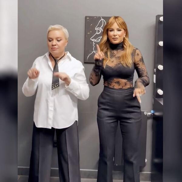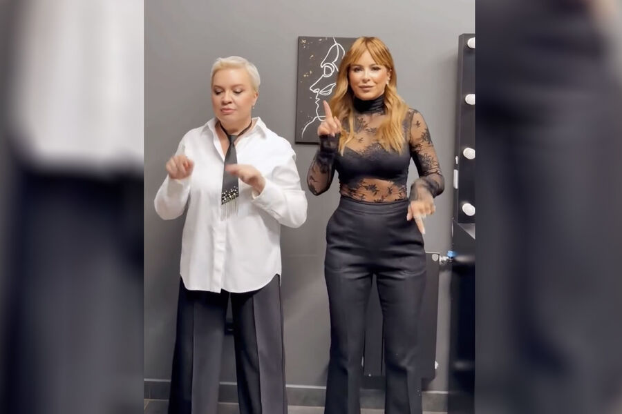 47-летняя Ани Лорак снялась вместе с 45-летней журналисткой Аленой Жигаловой. Певица позировала перед камерой в черном облегающем прозрачном топе с узором, который дополнила брюками с завышенной талией в тон. Поп-исполнительница также надела серьги и кольца. Знаменитость предстала с уложенными распущенными волосами и вечерним макияжем. Артистка и журналистка танцевали под песню рэпера Toxi$ Nobody.