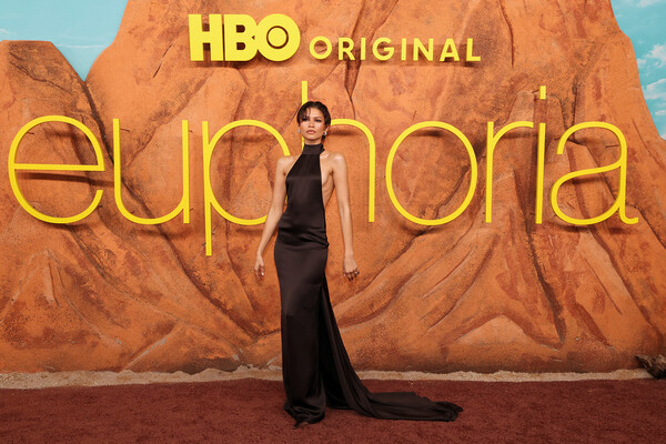 Зендая стала гостьей премьеры третьего сезона сериала «Эйфория», в котором исполнила одну из главных ролей. Актриса позировала на красной дорожке в шоколадном макси-платье с вырезом на спине. При этом артистка не стала надевать бюстгальтер. Знаменитость была запечатлена с укладкой с эффектом мокрых волос и макияжем с черными стрелками, румянами, контурингом и помадой.