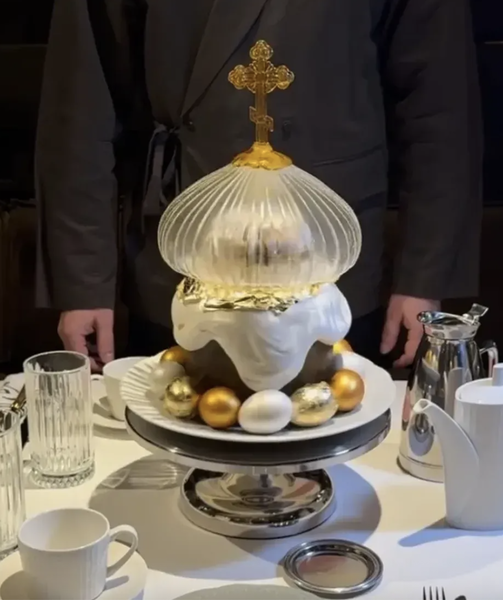 Денис Симачев в личном блоге выложил видео, на котором был запечатлен кулич «от-кутюр». Дизайнер написал под роликом, что пасхальный хлеб состоит из хрустального купола, креста из карамели, с начинкой «божьей милостью разрешенной» и с пасхальными яйцами в сусальном золоте. Изначально стоимость кулича была 20 тысяч рублей, позже ее увеличили до 35 тысяч рублей, а в конце концов цена выросла до 50 тысяч рублей.