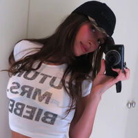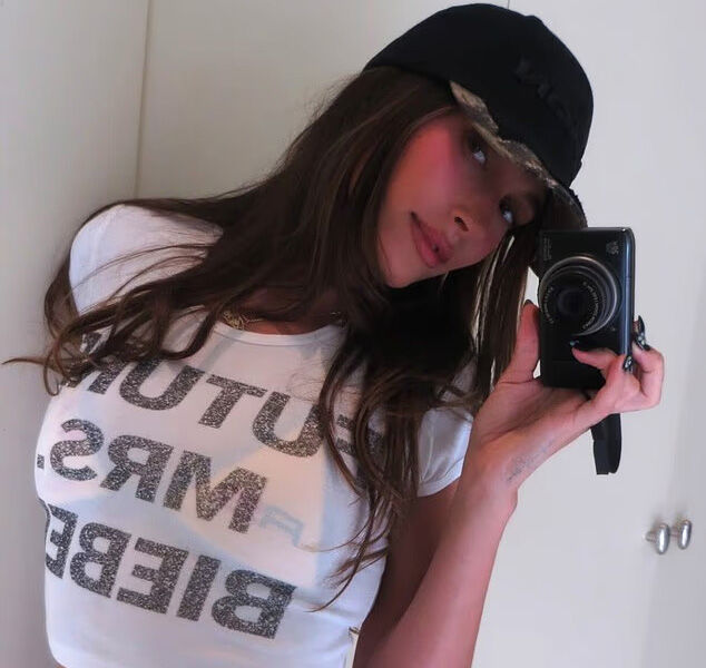 29-летняя Хейли Бибер предстала перед зеркалом в белом полупрозрачном топе, который сочетала с желто-синими стрингами-плавками и черной кепкой. Модель позировала с распущенными волосами и макияжем в естественном стиле с розовыми румянами и помадой.