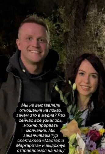 «Мы не выставляли отношения напоказ, зачем это в медиа? Раз сейчас все узналось, можно прервать молчание. Мы заканчиваем тур спектаклей «Мастер и Маргарита» и, выдохнув, отправляемся на нашу свадьбу, для меня это очень важно», — написала Карпович в соцсетях.
