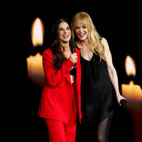 58-летняя Николь Кидман предпочла для выхода черное «голое» платье с глубоким декольте. Образ дополнили туфли с острым мысом. Волосы актрисе уложили мягкими прядями и сделали вечерний макияж. 61-летняя Сандра Буллок надела красный брючный костюм с черным лифчиком. Ей также сделали локоны и макияж с кремовой помадой.