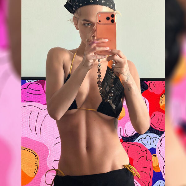35-летняя Рита Ора стояла перед зеркалом в крошечном черном лифе бикини, который дополнила юбкой в тон, банданой с принтом и золотым кольцом. Певица позировала с убранными волосами и без косметики.
