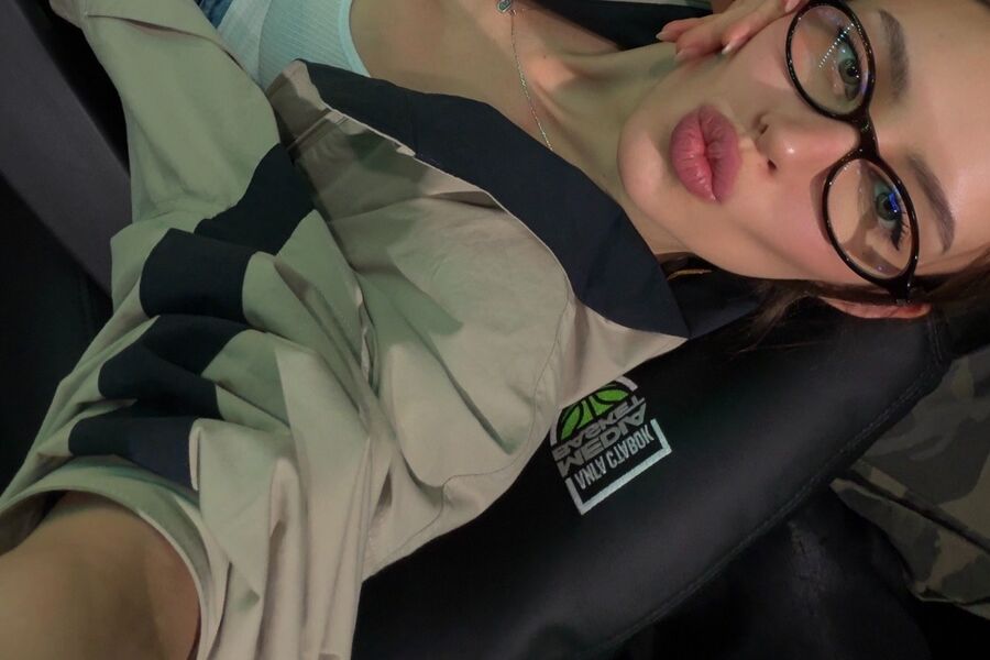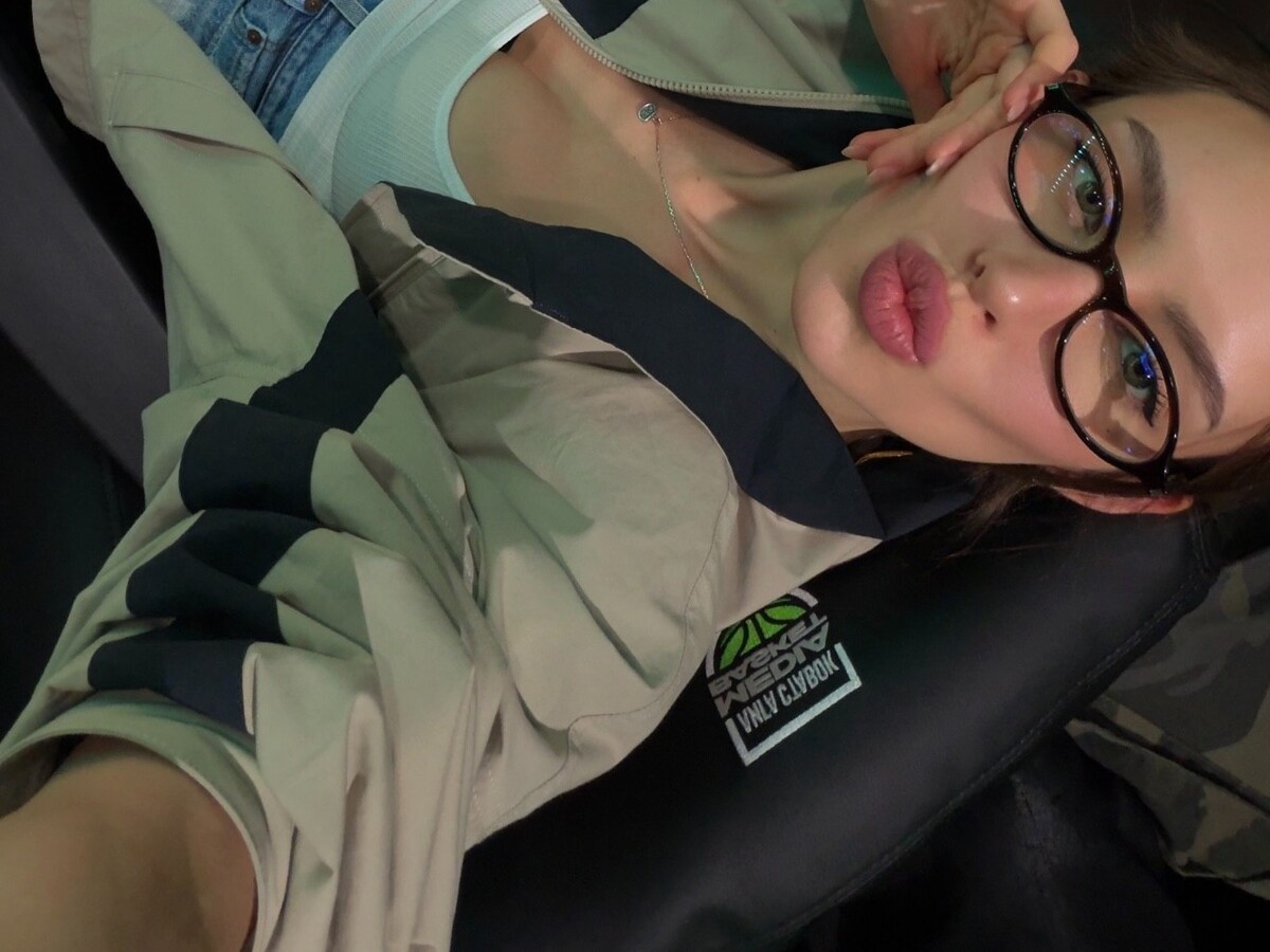 Валентина Иванова позировала в белой облегающей майке, которую сочетала со светло-коричневой курткой, короткими голубыми шортами, черными колготками и остроносыми туфлями на каблуках. Девушка также надела очки. Модель собрала волосы в хвост и сделала макияж с черными стрелками и розовой помадой. Возлюбленная Тимати была запечатлена на стадионе.
