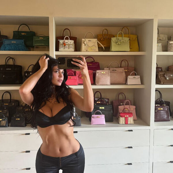 Кайли Дженнер позировала в черном кожаном лифчике и брюках. При этом волосы она распустила и сделала легкий дневной макияж. На фоне бизнесвумен показала коллекцию сумок от бренда Hermes, стоимость каждой из них может достигать несколько миллионов рублей.